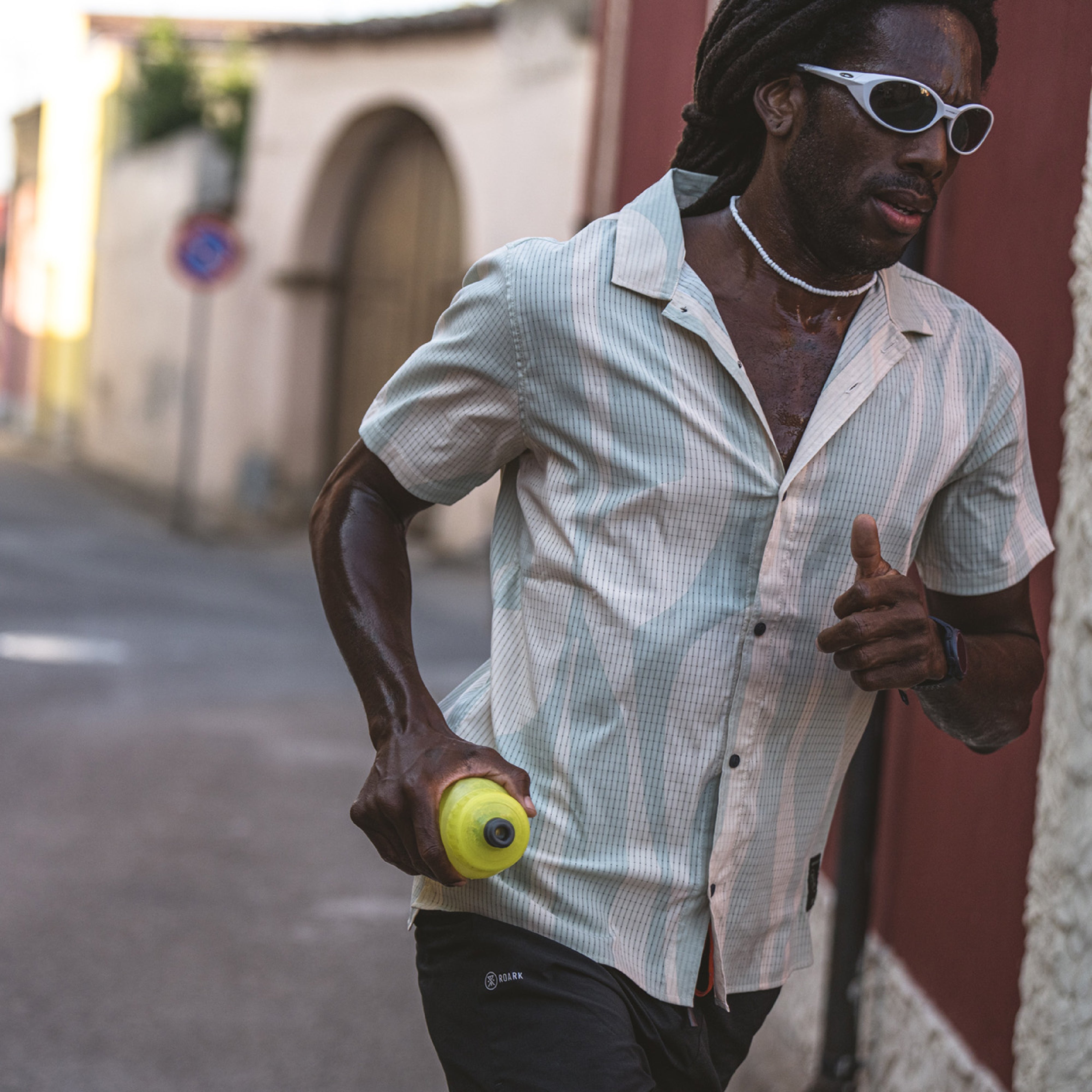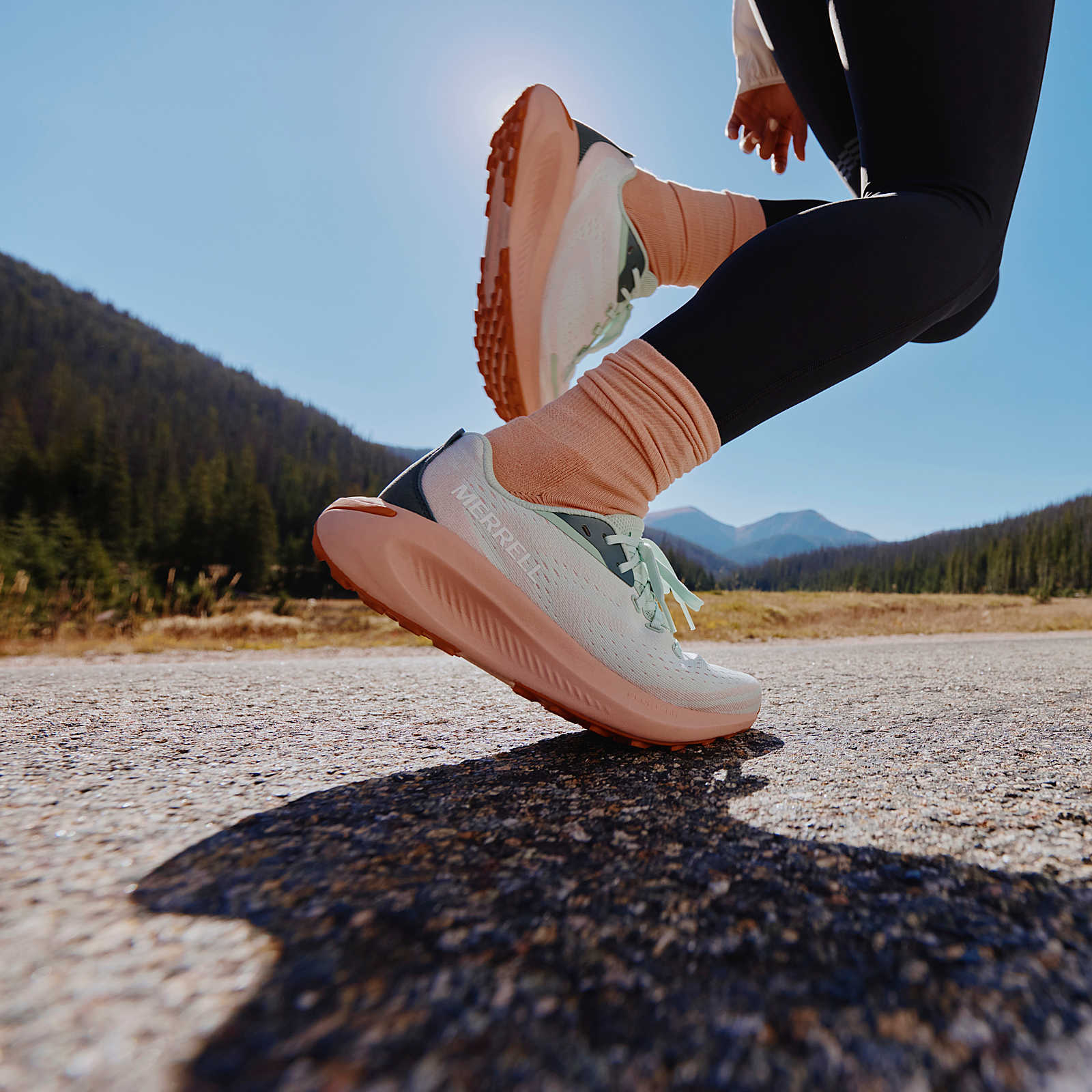 Trail running shoe "get lost" with Vibram Litebase Megagrip outsole. Trail running shoes with Vibram Litebase outsole, green accents, and supportive midsole designed for natural terrain agility.